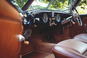 Il cliente, però, era uno di quelli importanti, meglio assecondare le sue istanze, deve aver pensato lo stilista. La modifica, da un punto di vista strettamente tecnico, riguarda essenzialmente la “pelle” del montante e il profilo del finestrino laterale, più raccordato. Sotto il rivestimento, infatti, si percepisce al tatto la sagoma di legno predisposta per accogliere il finestrino o, per utilizzare la terminologia corretta, la seconda luce laterale. La linea, se possibile, acquisisce ancora più dinamismo con il montante che sembra allargarsi sul parafango, ma senza togliere un grammo di eleganza, grazie anche alla tinta blu scurissimo, che alleggerisce i volumi e fa apparire la 6C 2500 SS “Villa d’Este” più compatta di quanto non sia in realtà.