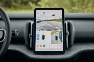 La EX30 Cross Country integra una suite tecnologica incentrata sull’esperienza utente e la sicurezza. L’interfaccia UX, condivisa con altri modelli elettrici Volvo, centralizza le informazioni sul display principale: la schermata Home include navigazione (basata su Google Maps), media e telefono, affiancata da una barra contestuale che si adatta al contesto di guida e una barra di sistema per l’accesso a menu, regolazioni veicolo e climatizzazione. Anche le informazioni di guida essenziali, come la velocità e le indicazioni di direzione, sono visualizzate su questo schermo centrale.
