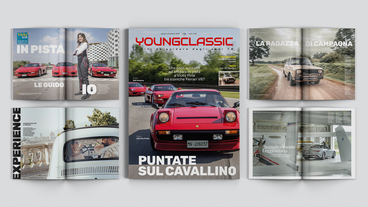 Tanto rosso, il colore della passione, sulla copertina del numero doppio (agosto-settembre) Youngclassic, pronto a farti compagnia sotto l’ombrellone. La nostra Vicky Piria ha infatti messo a confronto tre Ferrari 8 cilindri dagli anni 80 in avanti: l’indimenticabile 208 Gtb Turbo, la splendida (anche da guidare) F355 Berlinetta e la rivoluzionaria 360 Modena, che condusse il Cavallino nelle incontaminate praterie del nuovo millennio. Ma questo numero estivo è più che mai affollato di auto belle, particolari, rare, stuzzicanti e a volte dimenticate, come per esempio la Fiat 127 Rustica, un modello che sembrava ormai perso tra le nebbie del tempo e che invece va riscoperto, anche perché si rivaluterà.