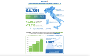 I dati raccolti da Motus-E evidenziano come l’Italia sia tra i Paesi più avanzati in Europa nella realizzazione di infrastrutture di ricarica, con un rapporto di 19 punti ogni 100 auto elettriche circolanti, superiore a quello di Francia (14 punti/100 auto), Germania (8 punti/100 auto) e Regno Unito (7 punti/100 auto). Il primato si conferma anche sul fronte delle colonnine veloci in corrente continua (DC), con 3,4 punti ogni 100 auto elettriche, contro i 2,6 della Francia, 1,7 della Germania e 1,2 del Regno Unito.