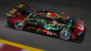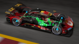 La Ferrari 499P è equipaggiata con un sistema elettronico complesso che gestisce numerose funzioni legate a prestazioni e affidabilità. Il sistema si avvale di oltre 300 sensori per monitorare lo stato della vettura, collegati tramite cablaggi specifici alle centraline di controllo (ECU). Le ECU gestiscono l’erogazione di potenza del powertrain, monitorano parametri di affidabilità e controllano funzioni ausiliarie come l’impianto di illuminazione, le luci di sicurezza per il sistema ibrido e il sistema di climatizzazione per l’abitacolo. L’integrazione del sistema ibrido ha rappresentato una sfida significativa, influenzando la progettazione dei sensori, dei cablaggi ad alto voltaggio e delle strategie di controllo software.