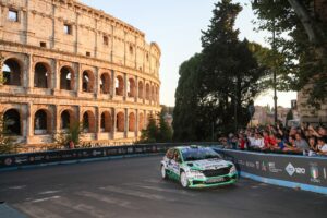 Alla fine, dopo l’inimitabile prova speciale all’ombra del Colosseo e le tre giornate di gara, l’hanno spuntata Giandomenico Basso e Lorenzo Granai su Skoda Fabia RS Rally2, che si portano a casa la terza vittoria stagionale nel CIAR Sparco e il terzo successo personale nella Città Eterna dopo quelli del 2019 e 2021, un record.